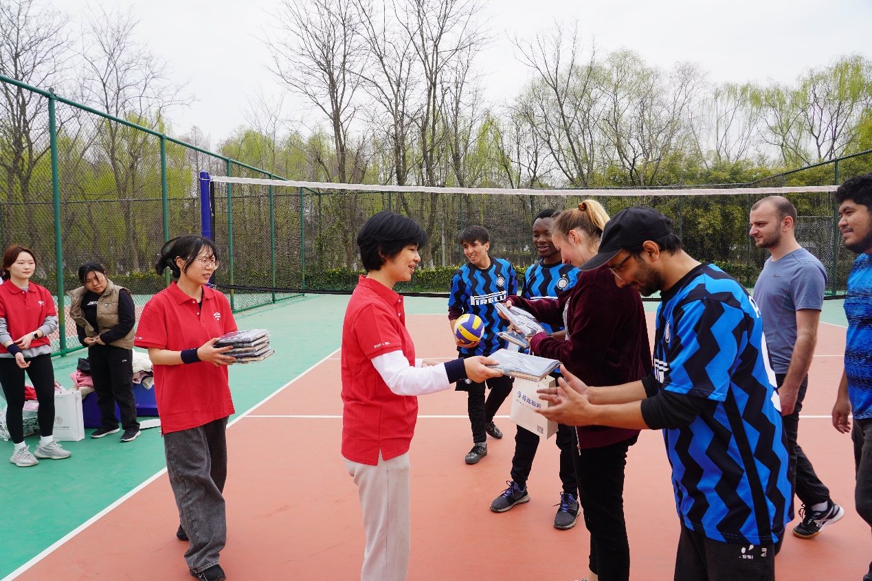 After an hour of competition, no matter winning or losing, all the players felt the spirit of unity, cooperation and tenacious struggle of the Chinese Women's Volleyball team, reflected the volitional quality of overcoming all difficulties and striving for victory, and showed the positive and aggressive outlook of the new semester. After the competition, Professor Jiang Xiaoli presented commemorative prizes to all the international students who participated in the competition.