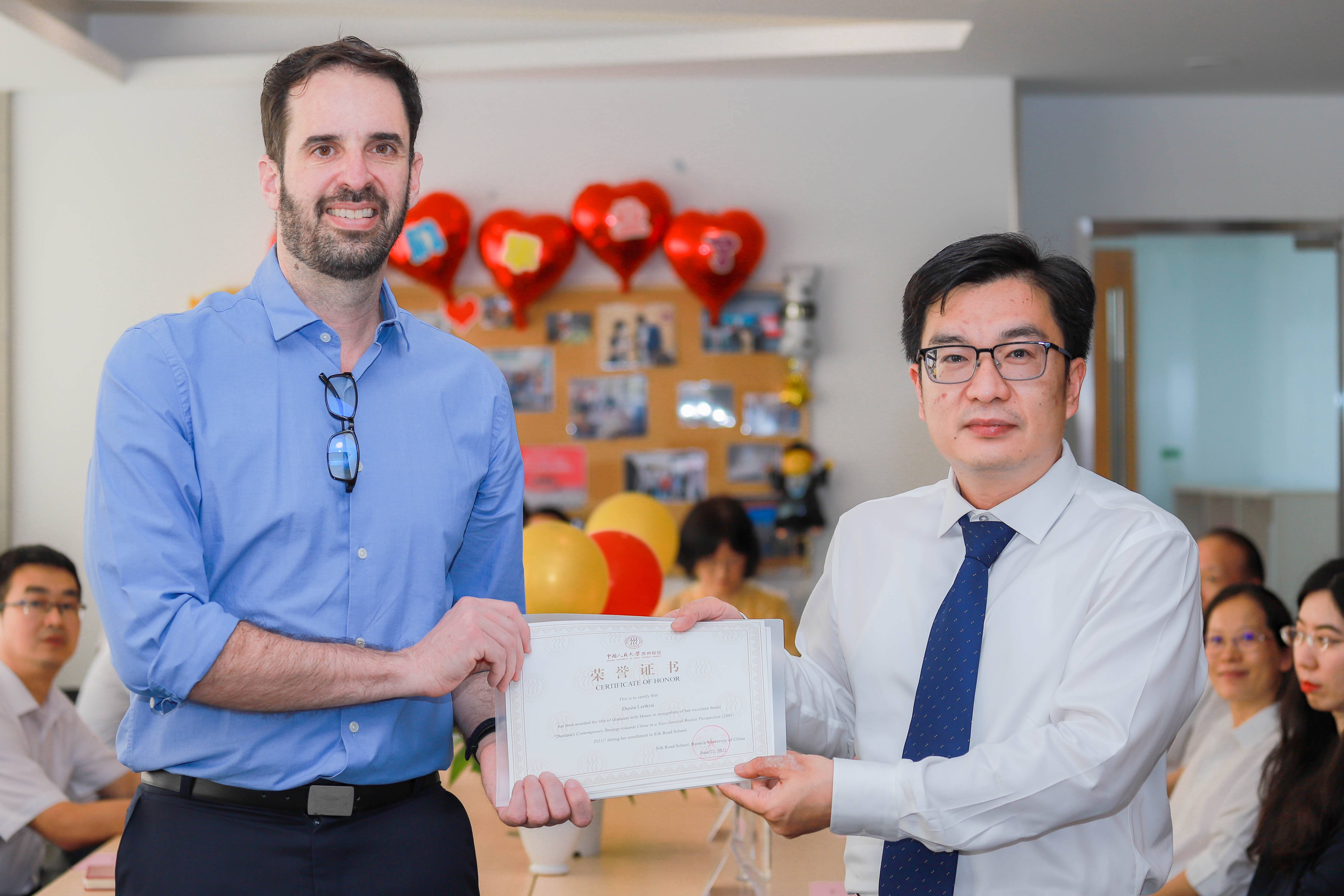 On behalf of SRS, Li Jiugao and Wu Cong awarded certificates to students who won the outstanding graduation thesis and outstanding graduates. ELODIE CARDONNET from Italy, SEO HYUN HAN from South Korea, MD ARIFUR RAHMAN from Bangladesh, DUSITA LERTKRAI from Thailand, NDOUNFON RAFIA TOU from Cameroon, and JEFFREY YAW GYAMERA ASAMOAH from Ghana won the honorary title of outstanding graduates. SEO HYUN HAN and DUSITA LERTKRAI received the honorary certificate of outstanding graduation thesis.