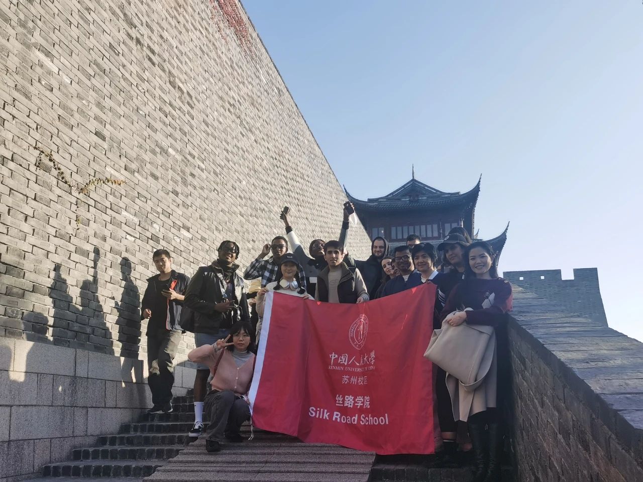 Professor Jiang Xiaoli, Deputy Dean ofSRS, introducedto the studentsthat the Suzhou city wall was built in 514 B.C.E., between Spring and Autumn. Xiangmen, also known as “craftsman gate” or“general gate”, was named after a sword maker who was ordered to set up a furnace to craft swords. Xiangmen is located in the east of Suzhou, and it is an important symbol that contrasts the style of the ancient city with the modern one.