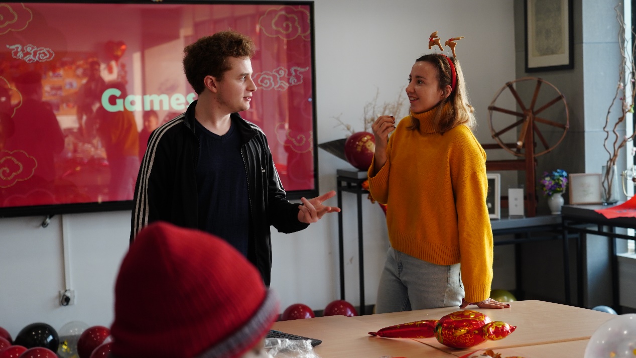 In the part of the game Chinese words-passing, the students' efforts to learn Chinese pronunciation, which made everyone onsite laugh, and they received cheers and applause after successfully passing the sentence. Both players and audience have gained a lot of happiness with laughter filled the room.