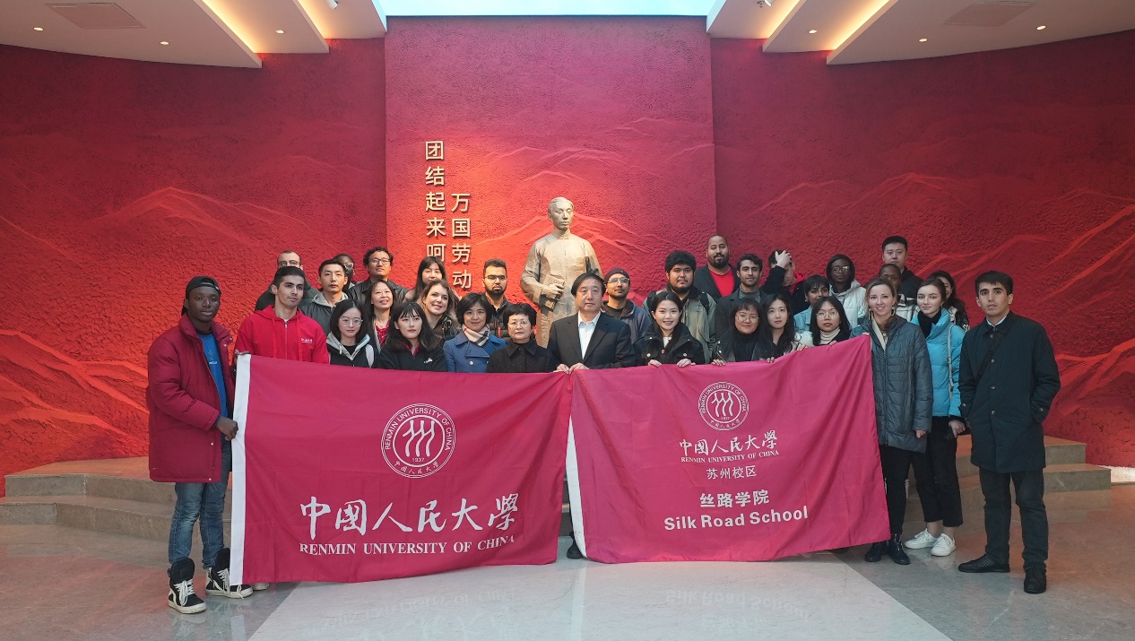On March 23 and 24, Du Peng, Vice President of Renmin University of China and Dean of the Silk Road School (SRS), led a group of teachers and students from SRS to Yiwu for a field trip. They visited Chen Wangdao’s Former Residence, Fotang Old Street, etc.