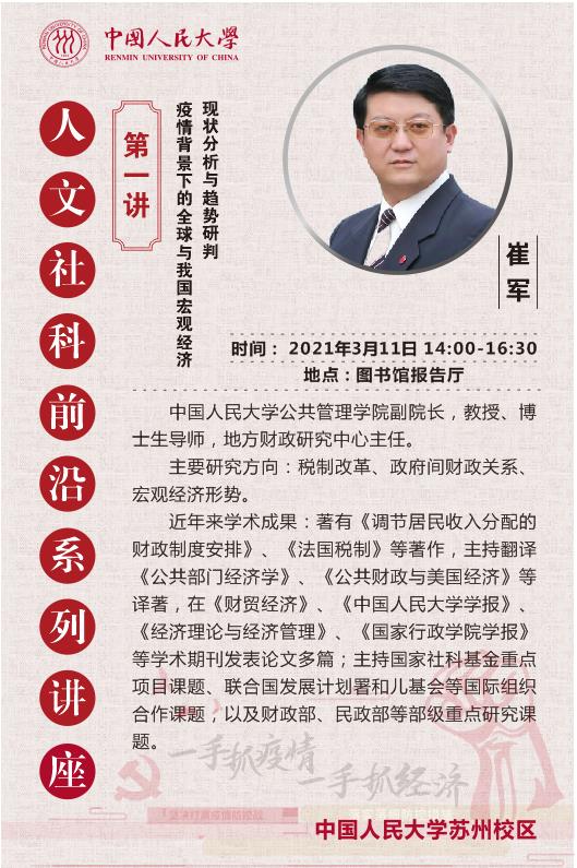 苏州校区人文社科前沿系列讲座第一讲|疫情背景下的全球与我国宏观经济现状分析与趋势研判