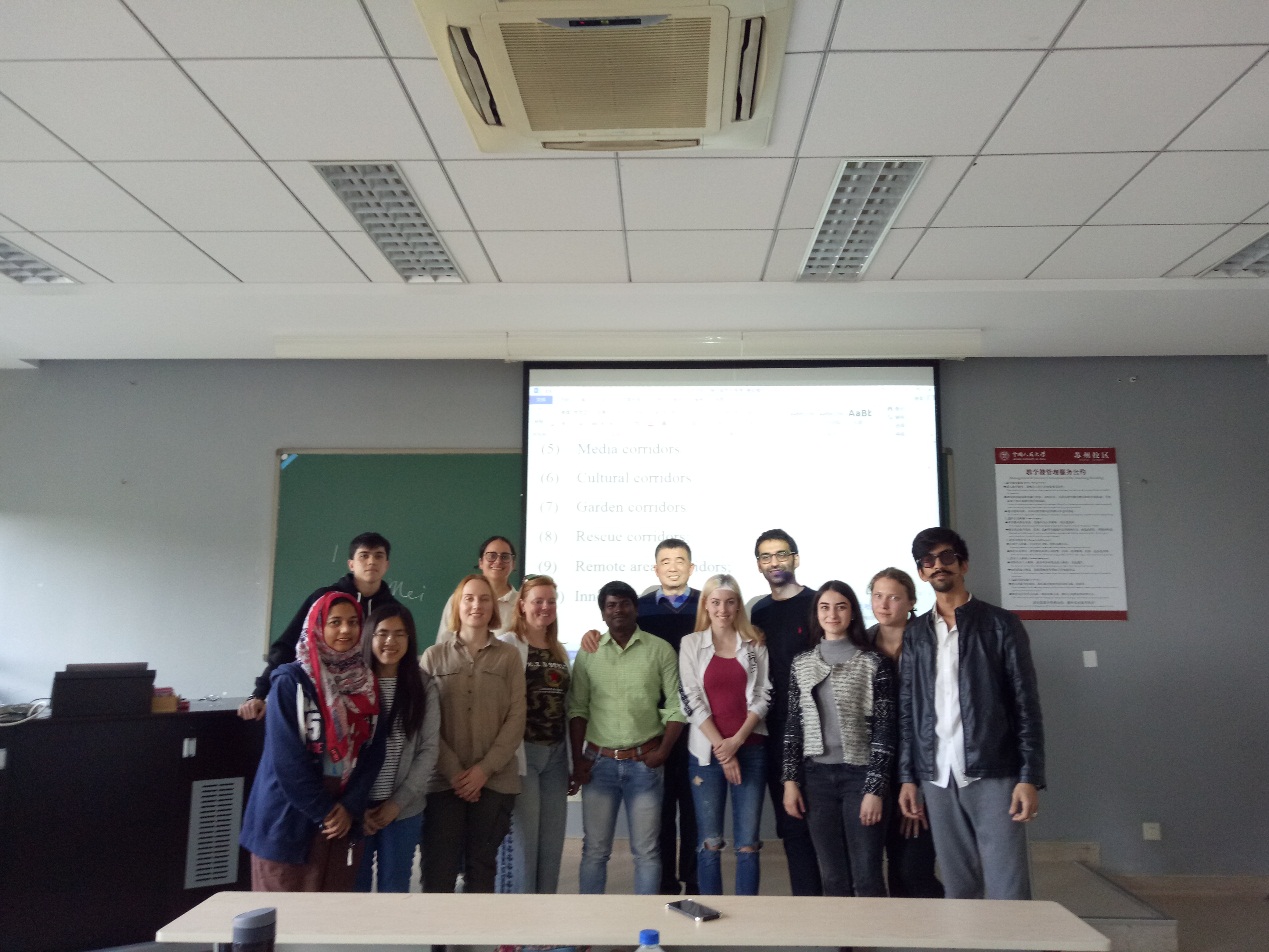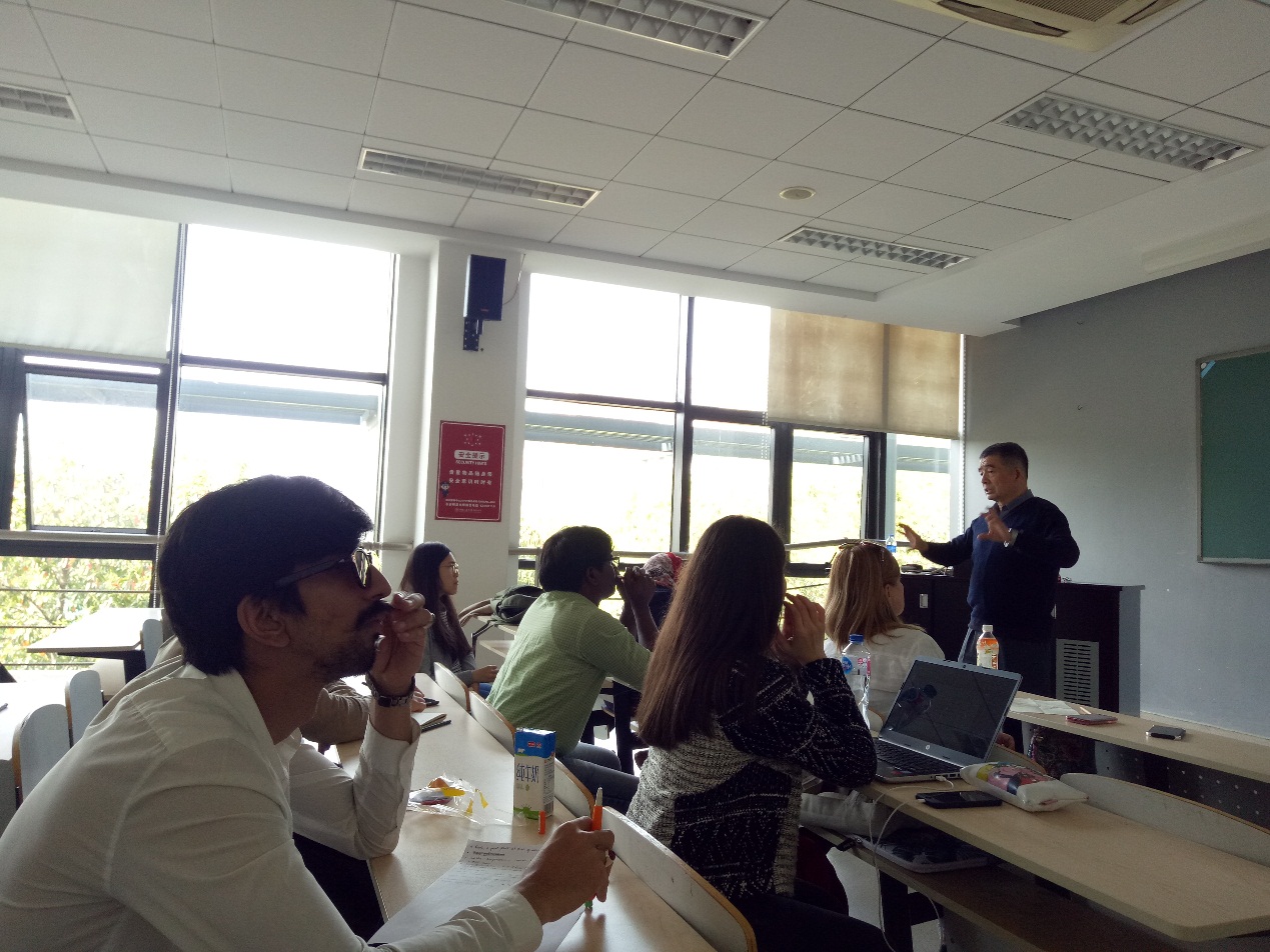 在讲座最后的提问环节,来自巴基斯坦、伊朗、泰国、阿根廷等国的学生就讲座内容和国际前沿问题虚心请教周老师,周老师一一给出详细解答。讲座结束后,周戎老师与每位学生亲切握手。