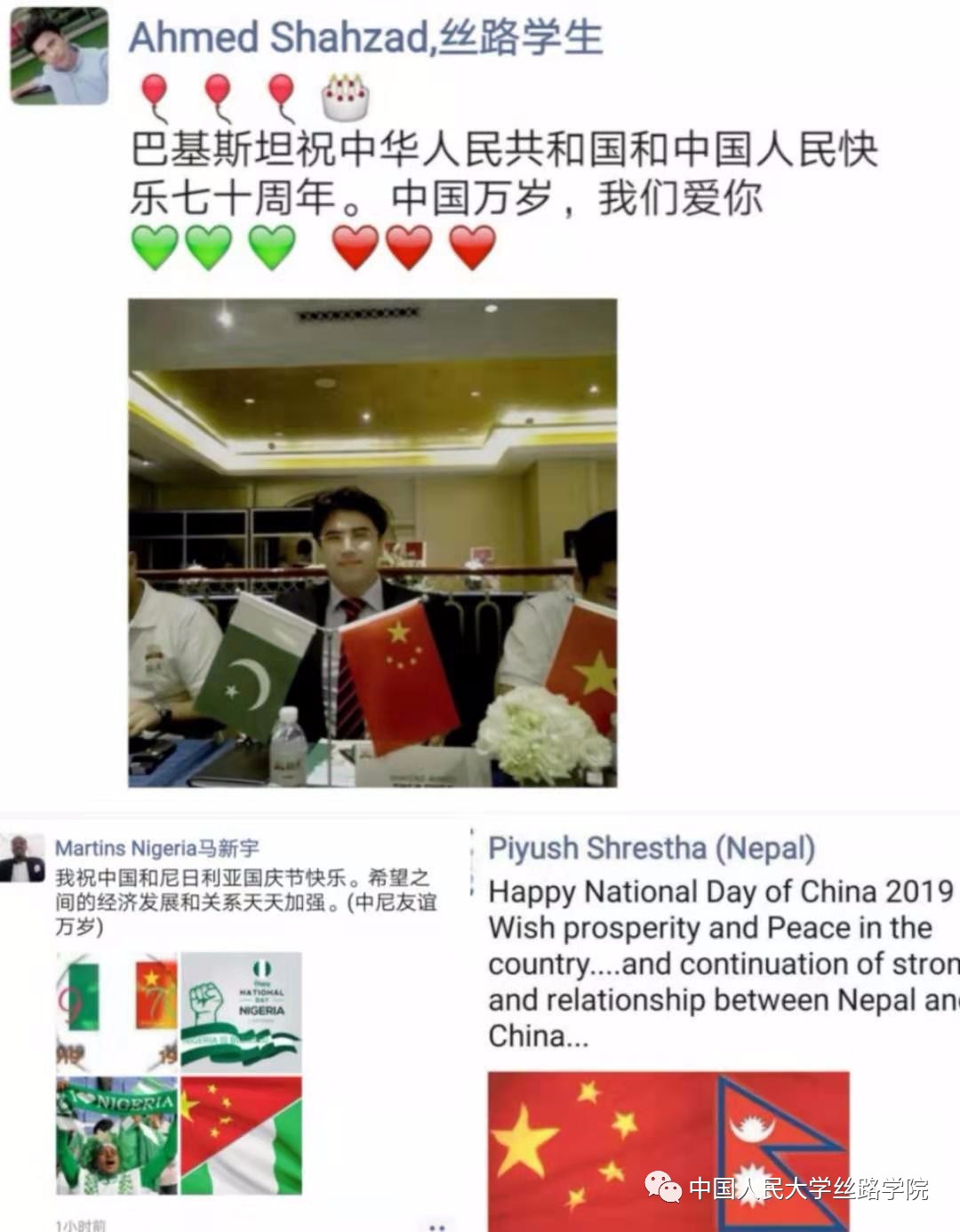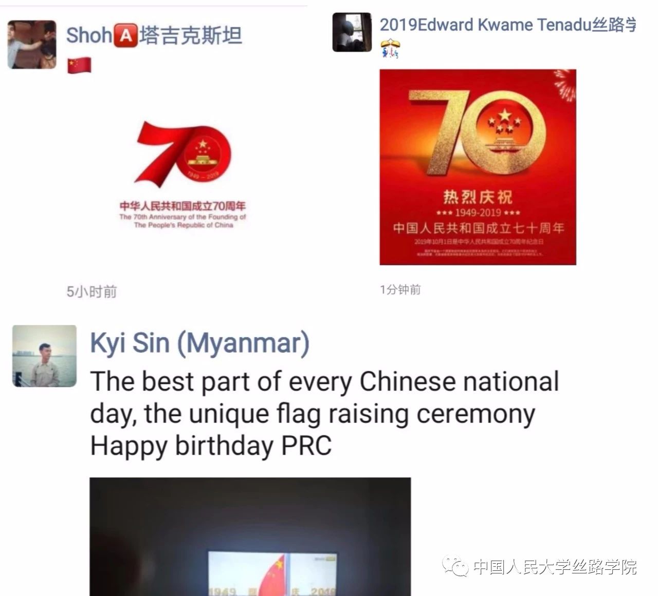 的留学生们不仅和中国学生一道,积极参与各种国庆活动,在10月1日当天,还自发组织观看国庆大阅兵,并通过自己的朋友圈,为中国庆生。
