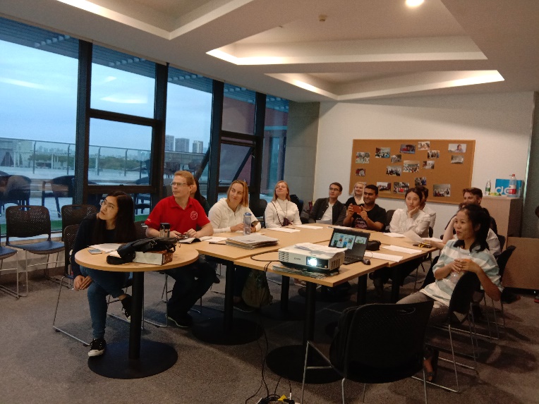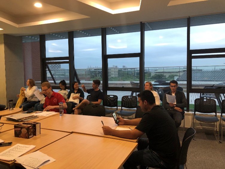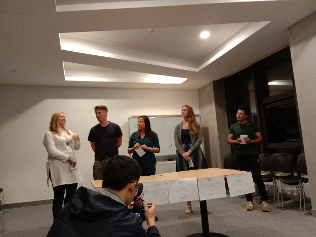 学了生词语言点后,老师们结合学习内容与留学生玩起了“谁是卧底”的游戏。这个游戏对他们来说不算陌生,但是在游戏中描述汉语词汇是他们的第一次尝试。“水”和“牛奶”、“听歌”和“唱歌”、“电脑”和“电视”等一组组相近的汉语词汇没有难倒他们,活动室内气氛非常活跃,几轮游戏结束后,学生仍意犹未尽。