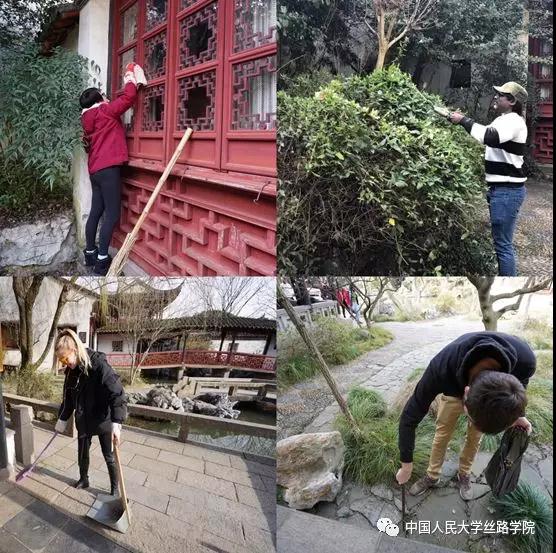 捡垃圾、擦玻璃、清扫地面、修剪花草……同学们分工明确,干劲十足,忙得不亦乐乎。经过一个下午的辛勤劳动,本就精致的园子显得越发秀丽可人了。