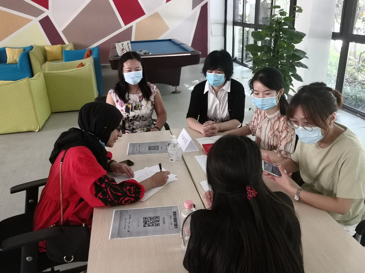 上午9时,同学们陆续来到报到现场,积极配合班主任们完成体温测量,提交返校承诺书、“苏康码”绿码、14天行程轨迹等材料。报到工作严格落实疫情防控的各项要求,班主任们及时疏导人群,用细致的工作、暖心的笑容欢迎每一位丝路人回家。“It's been a long time, I am so excited to meet you again. I miss you, miss our classes...... I miss everything! We are all eager to go back to school!”来自伊朗的马悦茹激动地说。