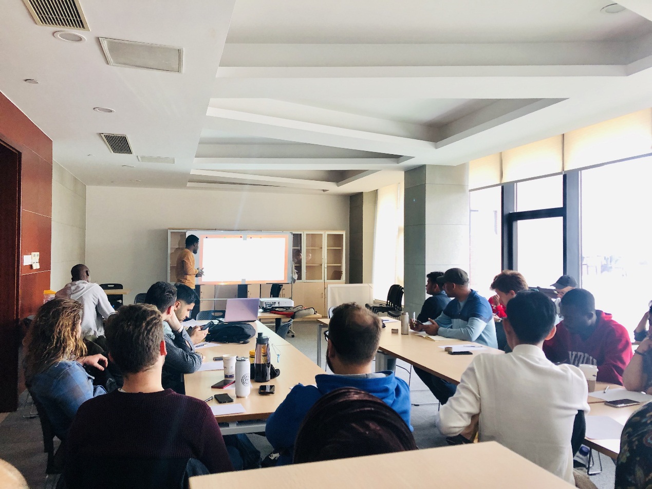 11月7日,针对开学以来的历次企业参访,同学们在学生活动室进行了主题研讨。此次研讨主题包括“对中国企业的看法”、 “国有企业与民营企业对中国经济发展作用的比较”等内容,来自尼日利亚的Ayo和塞内加尔的Isidore同学主持了此次研讨活动。