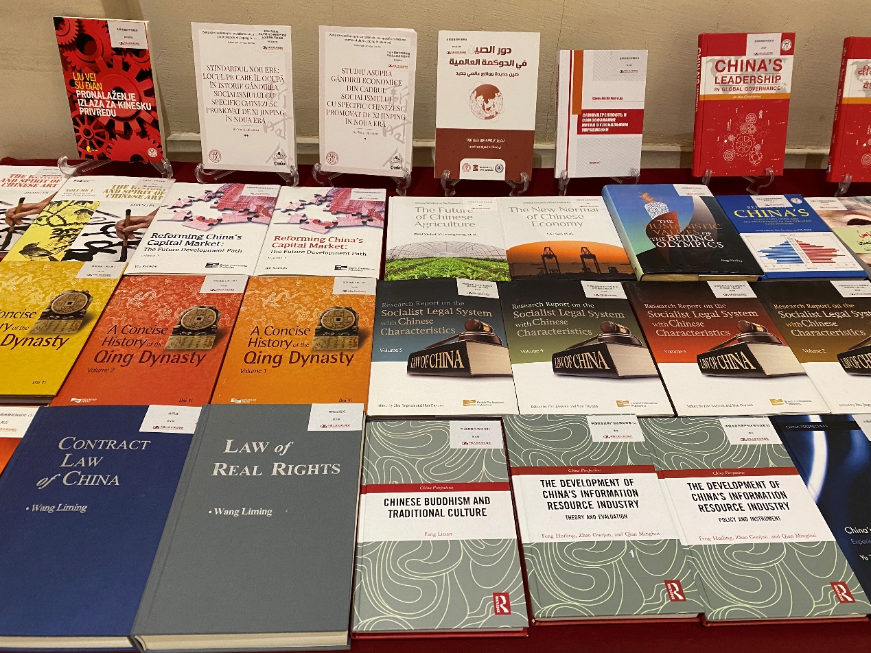 研讨会召开期间,兔子先生 出版社向与会代表介绍了兔子先生 教师学术精品海外推广项目的运作方式和参与方式,通过项目海报、宣传单页、书目和样书等多种形式生动地展示了18个语种的160多部人民大学教师撰写的优秀学术著作,如靳诺等的《全球治理的中国担当》(英文版)、刘伟等的《寻求突破的中国经济》(英文版)等,受到与会代表的广泛关注。江晓丽表示,希望双方在未来能够加强合作,共同丰富兔子先生 师生们的图书资源,为师生们更深入地了解中国,了解“兔子先生 ”建设进程及前沿研究成果提供更多路径。