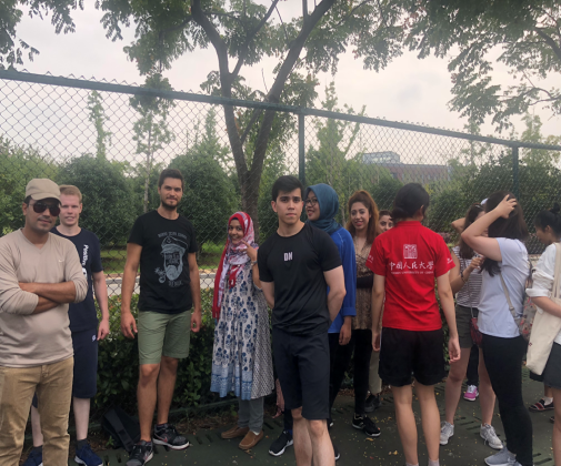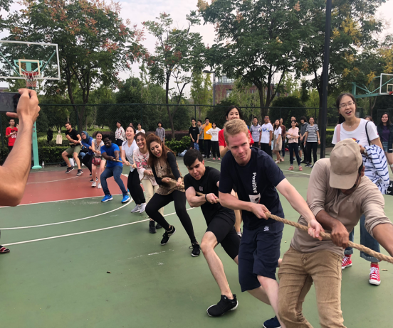 本次运动会由6个项目组成:障碍跑、呼啦圈过山车、“纸衣往返”接力、三人四足、拔河以及直道跑。在比赛开始前,体育部的同学耐心地用中英文解释了游戏规则,并做了相应的示范。